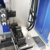 - Плоская станина с инструментальной стойкой бандажного типа, цанга под давлением воздуха, сервопривод позиционирования шпинделя.